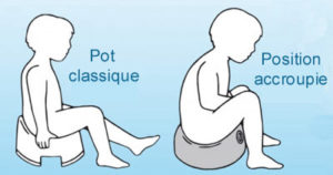 Sur ce pot physiologique les jambes de bébé sont légèrement surélevées et écartées. Ainsi, la position est accroupie et le buste et les jambes forment un angle à 35 degrés.